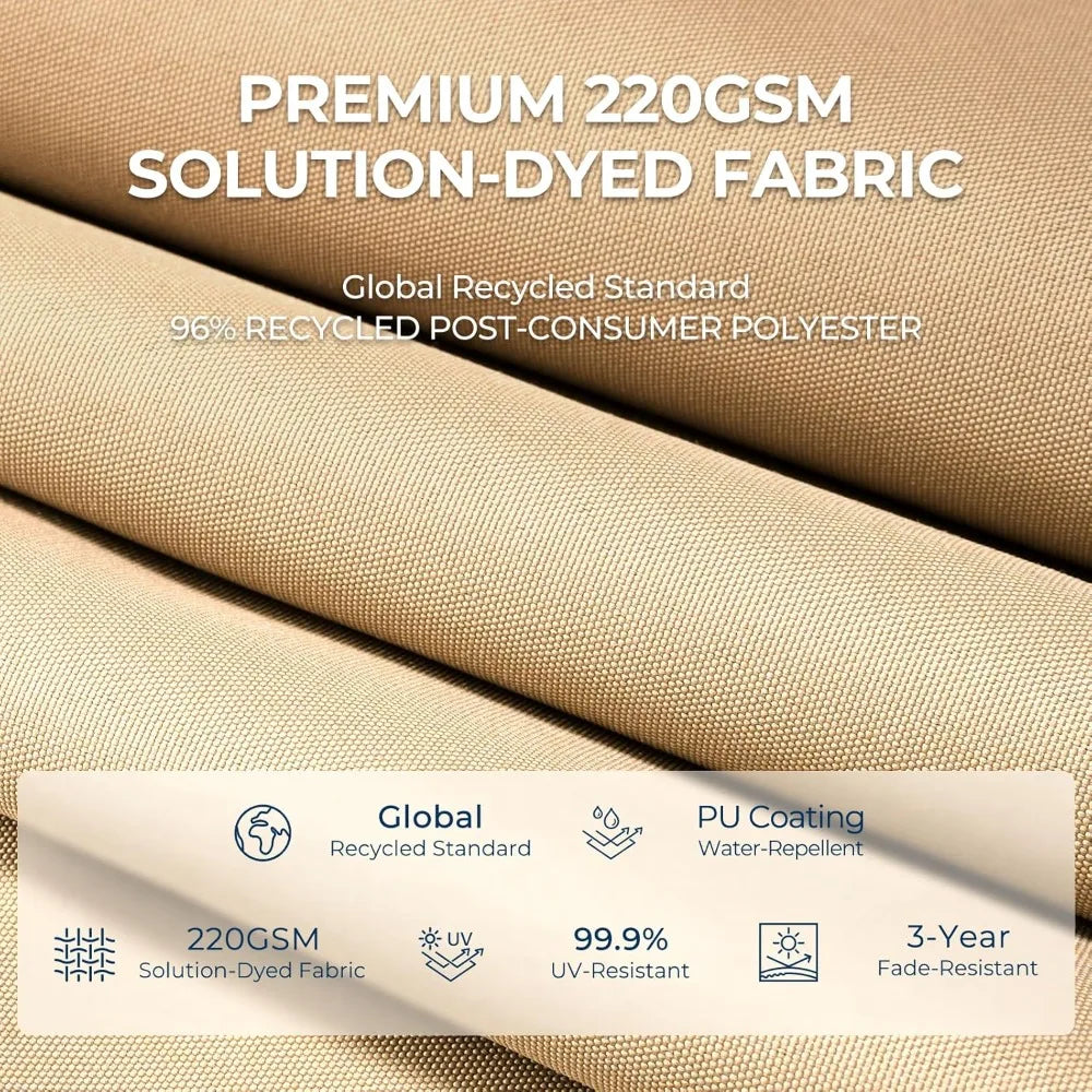 - PREMIUM CANOPY: High-quality 10ft 220gsm solution-dyed fabric with UPF50+ anti-UV coating provides 3-year fade-resistant, 99.9% UV-resistant, and water-repellant properties.Our offset patio umbrella provides a 10FT larger shaded area.The cantilever umbrella can block harmful UV rays including UVA and UVB effectively so as to protect your health.